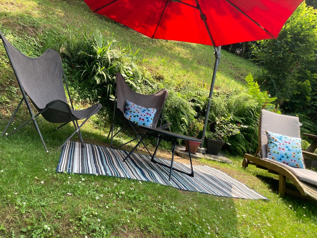Litet modernt fristående trähus: vardagsrum med kök, bord för 4 och vardagsrum med bäddsoffa, separat sovrum, badrum med dusch. Tillgången till huset är privat. Du kan njuta av dess trädgård och dess terrass med grill och solstolar.