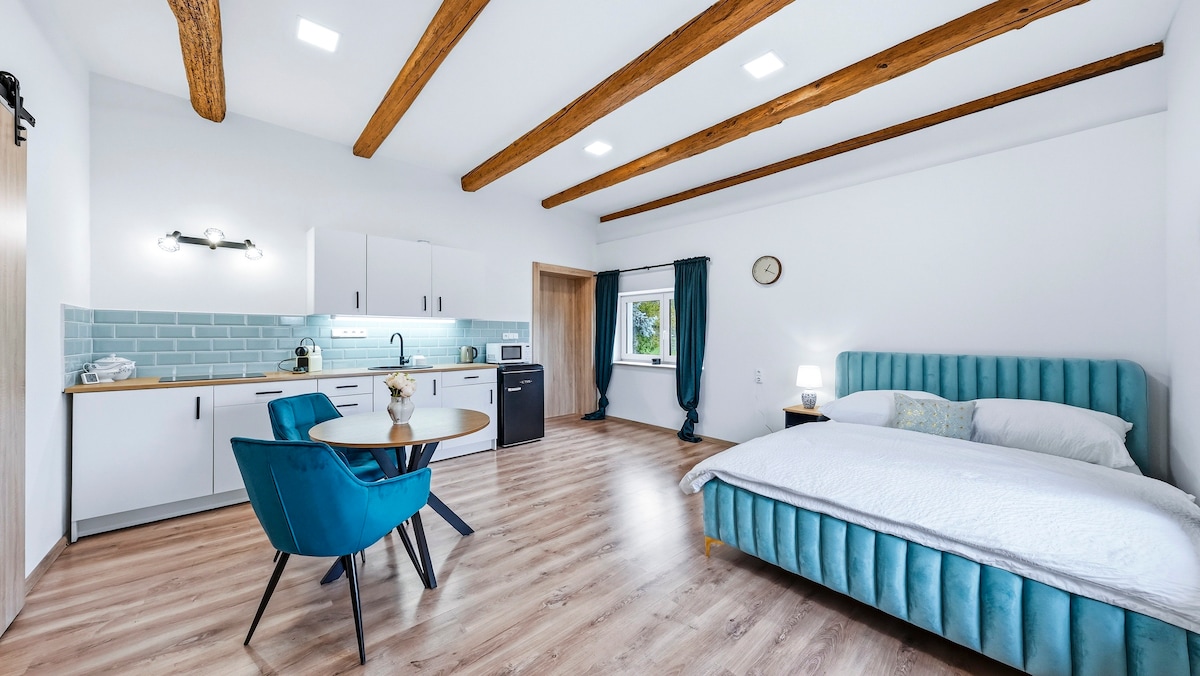 Lägenheten ligger i centrum, bara 300 meter från torget och är därmed en idealisk plats för affärsresor för att utforska skönheten i historiska Litoměřice, eller barer, restauranger och kaféer. Det är unikt inte bara på grund av dess läge, utan också på grund av dess läge i huset, när det hela ligger i trädgården, så det erbjuder en fullständig oas av lugn i hjärtat av staden. Det finns en rymlig terrass där du kan koppla av efter en lång dag och njuta av utsikten över stadsmurarna. Detta ger dig allt du behöver för din vistelse.
