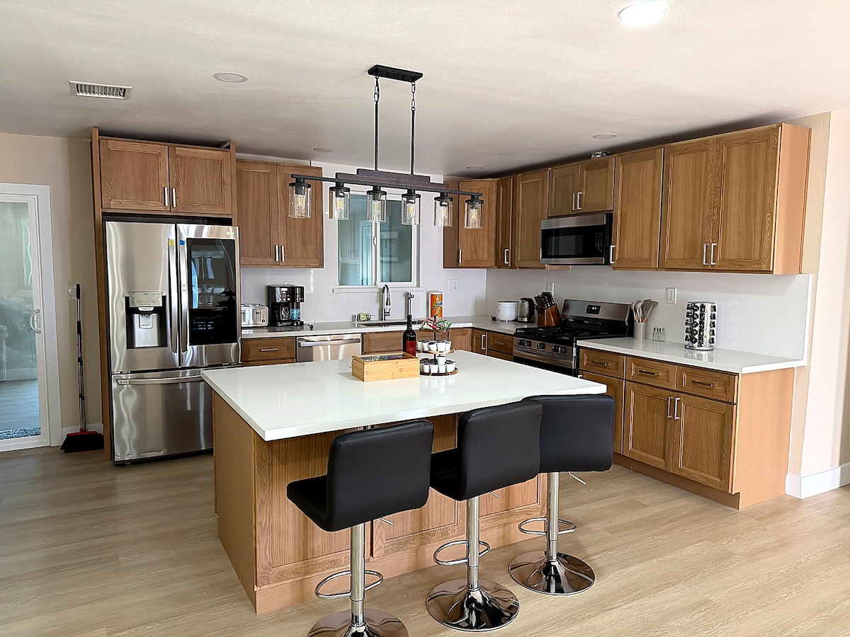 Enjoy a relaxing vacation stay in our stylish, clean, modern-furnished home. This cute cottage includes a fully-equipped kitchen with a 27 cu.ft 4-door refrigerator, brand new front-load washer & dryer with steam technology, free high-speed WIFI , two 55" Vizio 4k TVs with Netflix, dedicated work area for all your short and long-term needs.