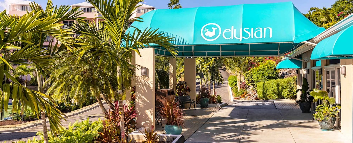 Perfekt strandflykt för 1-2 par eller liten familj! Denna rymliga lägenhet på Elysian Beach Resort ligger bara några steg från vackra Cowpet Bay på East End of St. Thomas. Resortbekvämligheter (utan extra avgifter), utmärkt läge vid stranden intill Ritz-Carlton. Sovrummet har en bekväm king size-säng + queen size Murphy-säng som enkelt kan fällas ner för extra sovplats i vardagsrummet. Fullt utrustat kök, denna lägenhet erbjuder allt du behöver för en avkopplande kort eller lång vistelse