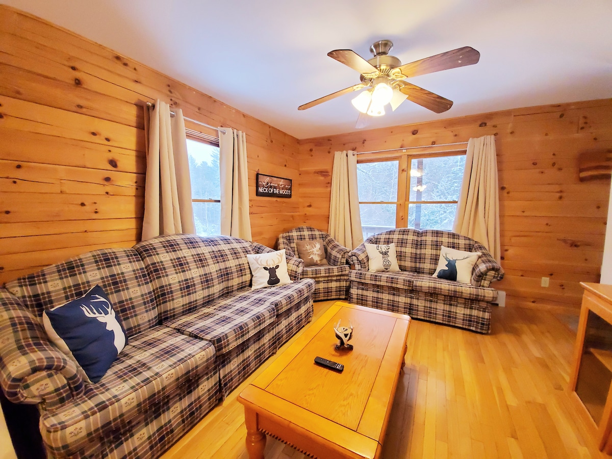 Stuga med utsikt över bergen, nära skidbacken Burke Mountain!