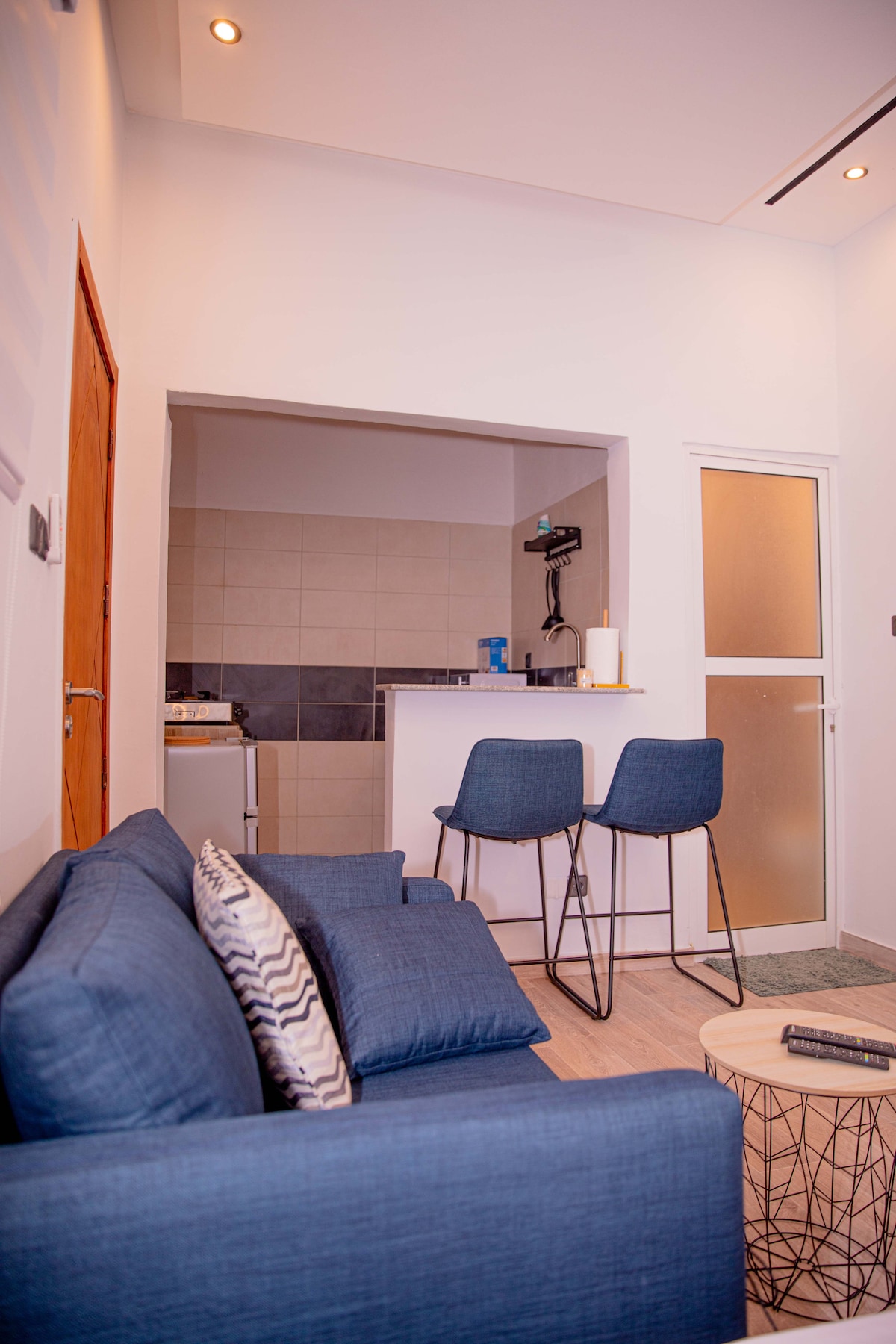 Beläget i fiskevägsområdet i Fidjrossè Cotonou, drar bostaden nytta av närheten till den internationella flygplatsen Kardinal Bernardin Gantin (7 min med bil) och Avenue de la Francophonie som är Fidjrossès största kommunikationsaxel. Denna studiolägenhet är inbäddad på tredje våningen med en yta på 35 kvm. Den kommer att förföra dig med sin snygga dekoration, ljusstyrka och premiumbekvämligheter.