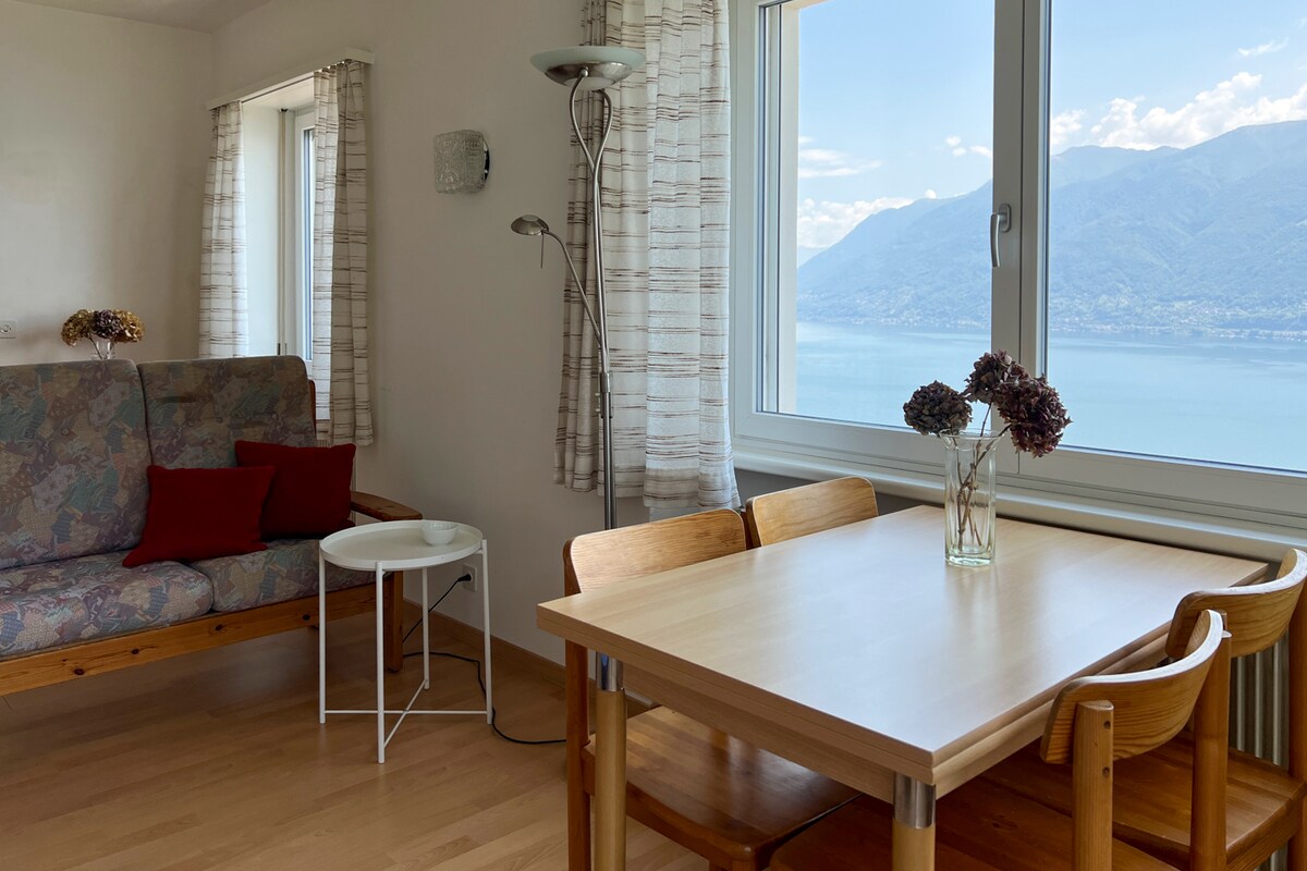 Boendet ligger direkt vid sjön och erbjuder en gemensam trädgård, en privat strandpromenad med direkt tillgång till sjön, paraplyer, solstolar. Alla rum har utrustats med maximal komfort: badrum, dusch, kök, soffa, garderober, kylskåp, balkong med hisnande utsikt över öarna. Huset ligger 30 minuter från Bellinzona med bil, 10 minuter från Ascona, 15 från Locarno och 15 minuter från Locarno och 10 från Cannobbio (Italien). Betald parkering 7,00FCH per dag, 1 bil per lägenhet