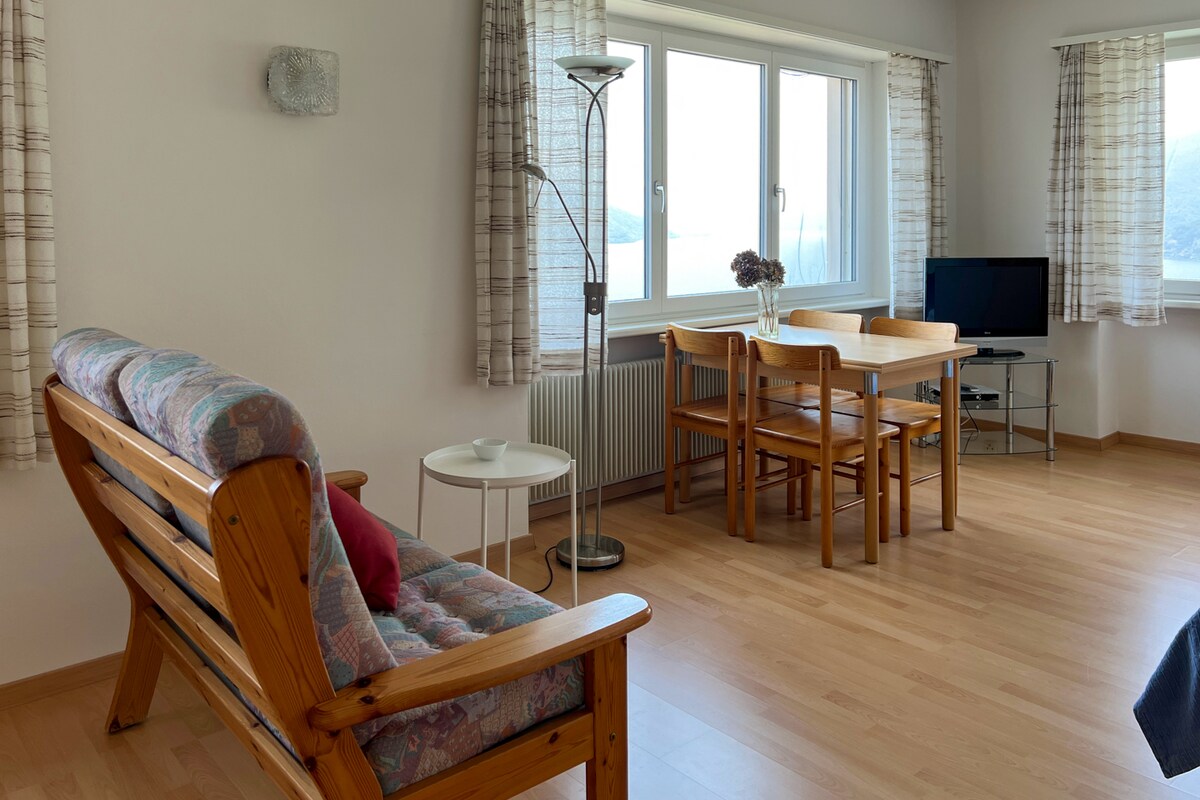 Solig 3,5-rumslägenhet med 180° sjöutsikt mitt i Brissago, med plats för upp till 4 personer. Denna eleganta lägenhet totalrenoverades i slutet av 2021 och möblerad med nya möbler. Vardagsrum: 80m², rymligt vardagsrum med matbord och soffa med schäslong, fullt utrustat kök, TV, Wi-Fi/internet. Två modulära rum kan också användas som ett hemmakontor med två arbetsytor. Den öppna 10 m² balkongen erbjuder en spektakulär utsikt över sjön Maggiore.