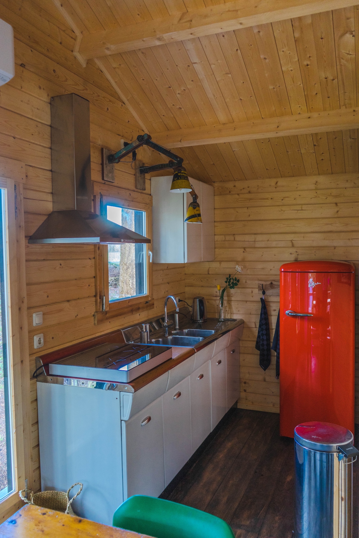 Vårt skandinaviska boende i modern vintagestil ligger undangömt i utkanten av skogen. Öppna skjutdörren och ät frukost med fågelljud, talldoft och ekorrar runt omkring dig. Stora glasfasader, danska designmöbler, en regndusch och ett baristahörn ger lyxig komfort i naturens sköte. Utomhus kan du njuta av en dusch eller ett bad under tallarna, koppla av i hängmattan och en eldstad under stjärnhimlen. Gorsselse Heide och de historiska hansestäderna Zutphen och Deventer ligger runt hörnet.