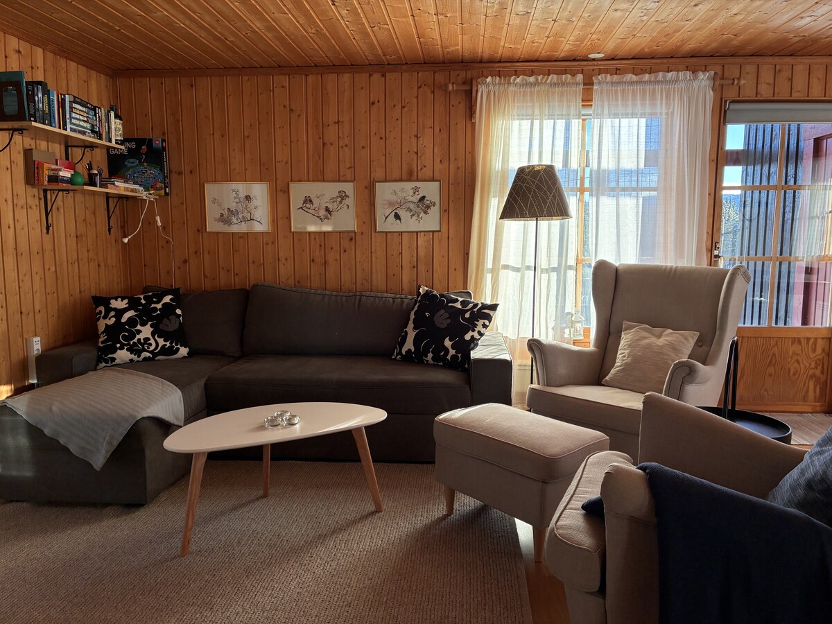 Comfortable family accommodation with 8 beds, a cosy fireplace and sauna. Parking for 2 cars. Proximity to nature, the alpine ski resort, cross-country/hikning/biking trails. Newly renovated kitchen+bathroom (2021). Dishwasher, microwave, Wifi, AppleTV. Plenty of summer/winter activities: downhill biking, hiking, swimming, fishing, skiing, ice fishing, skating, ride a snowmobile or tracked vehicle. The village (3 km) offers good restaurants, food store and sports shop, open all year round.