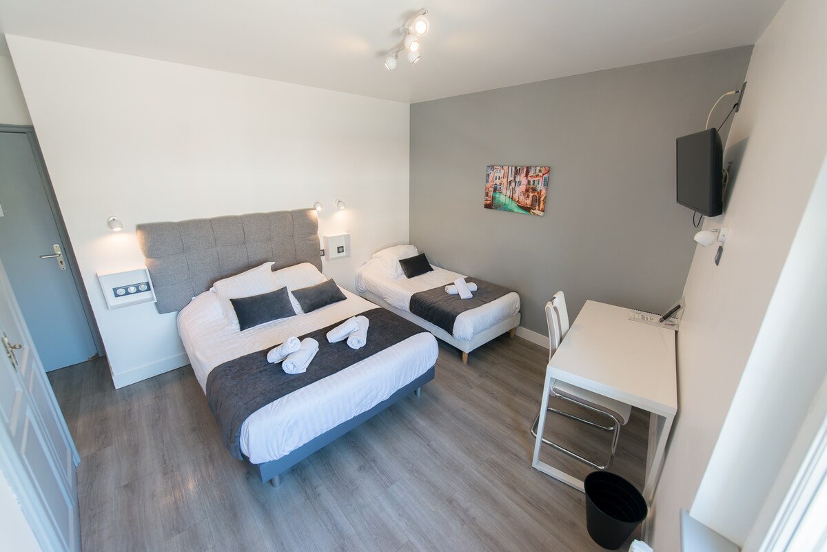 - Detta boende i en charmig byggnad, ligger mittemot tågstationen, vid dörren till tågstationen, du korsar vägen och du är där! - Det ger dig enkel gångavstånd: till Place d'Arc shoppingcenter, restauranger, banker och alla andra bekvämligheter. - Dessa rum är funktionella och bekväma. - Perfekt för affärs- eller turistvistelser i hjärtat av staden Orleans. - Möjlighet att boka upp till 4 sovrum: ↘️Klicka på värd för att komma åt de andra rummen.
