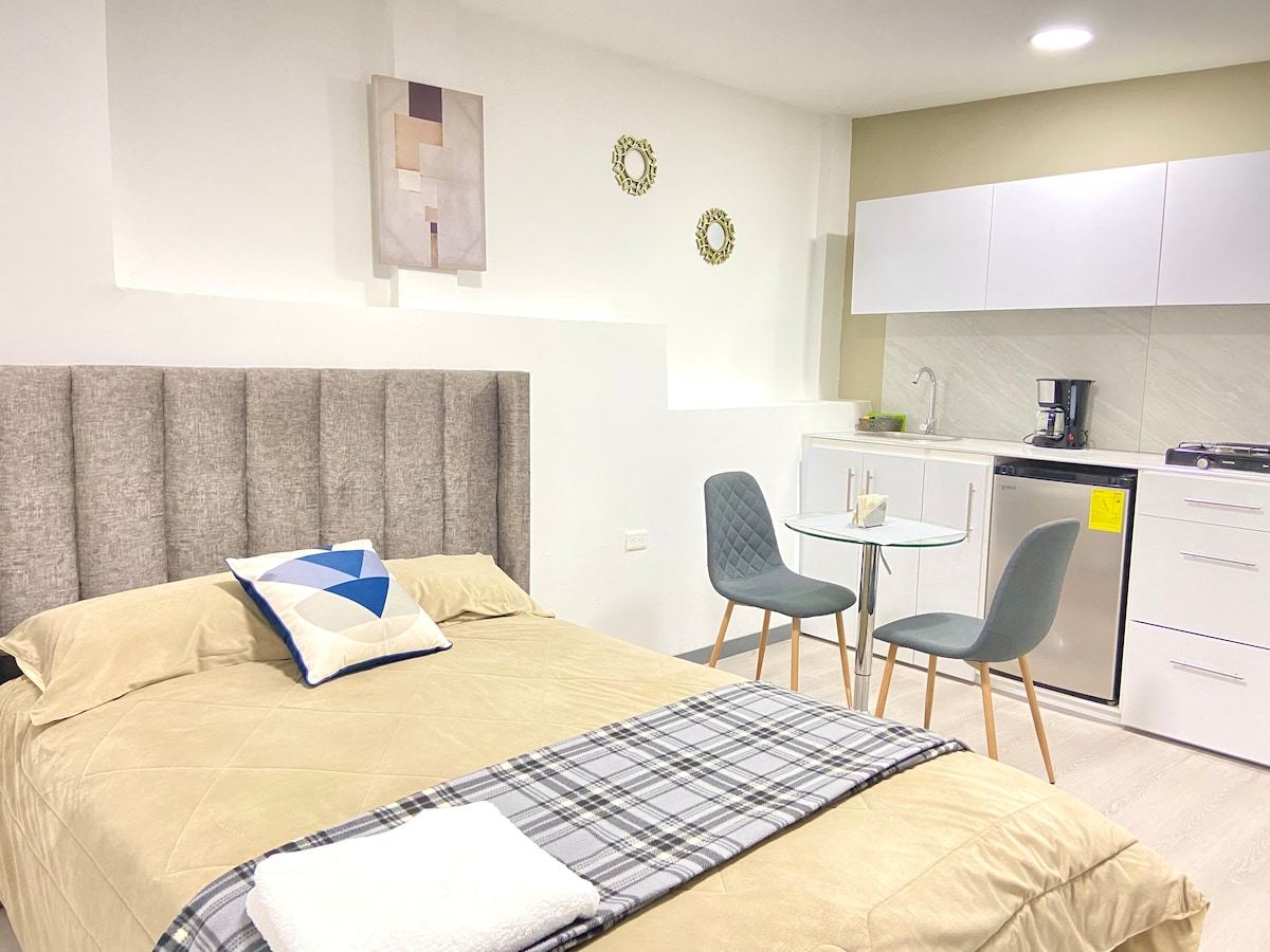 Denna nya lägenhet med privat parkering erbjuder två stora sovrum och två fullt utrustade badrum, perfekt för par, grupper eller familjer. Några steg från UTPL, perfekt om du kommer till ett evenemang och nära stadens centrum. Fullt utrustad med nödvändiga bekvämligheter, inklusive fullt utrustat kök, höghastighets Wi-Fi och förvaringsutrymmen. Inredd i en modern stil är det den perfekta platsen att koppla av och njuta av en bekväm och bekymmersfri vistelse.
