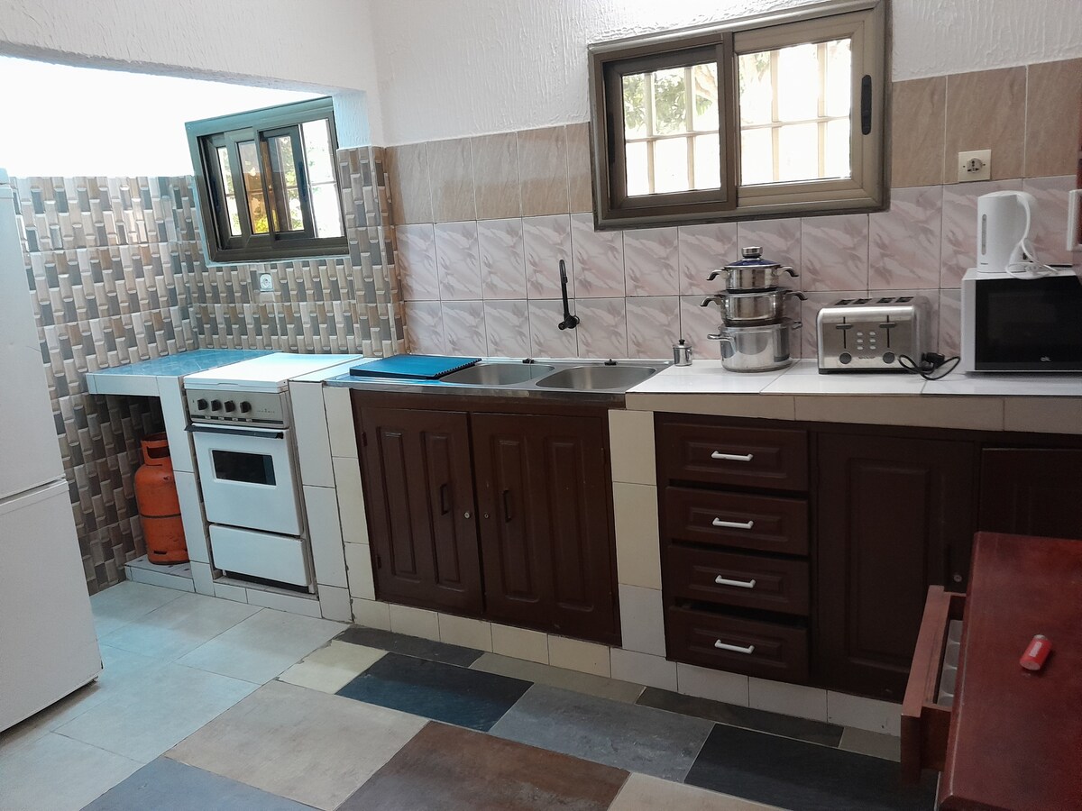 En elegant stor möblerad bottenvåning i en fantastisk villa med egen ingång över en vacker trädgård till den härliga terrassen. En perfekt plats för en lugn och trevlig vistelse som är långt bort från Lomés liv och rörelse. 5 minuters promenad till stranden. Beläget vid "Kpogan new quartiers" 3 minuters promenad från huvudvägen (N2) Lomé-Cotonou motorväg, 25 minuters bilresa från flygplatsen och centrum av Lomé. Apotek, små butiker, en stormarknad "Champion" en lokal marknad ligger alla i närheten.