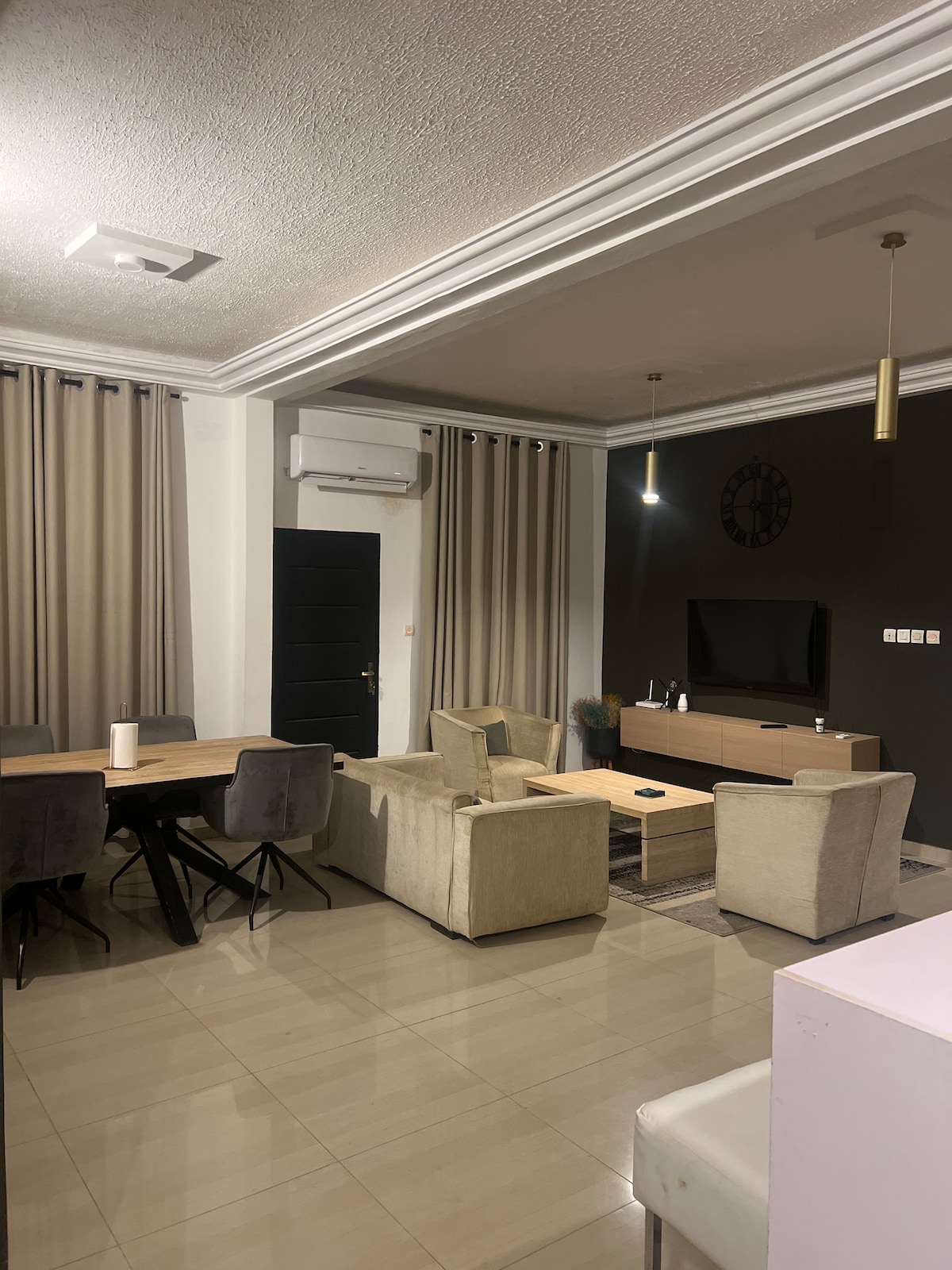 Chic två sovrum nyrenoverad vardagsrum lägenhet med snygg inredning. Lägenheten ligger 200 meter från de franciskanska brödernas kyrka i Adidogome och består av: • ett luftkonditionerat vardagsrum • Två luftkonditionerade sovrum med eget badrum • ett modernt, fullt utrustat och funktionellt kök • en privat altan • Toaletter för besökare • ett garage Hyresavgifter inkluderar vatten, el, höghastighets wifi och städtjänst.