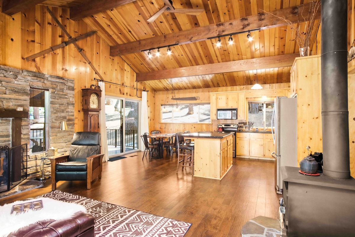 Fly till The Chalet Getaway - en stuga från 1970-talet som väntar på att svepa in dig i varma vintage-vibbar. De 20 fots bågfrontfönstren ger fantastisk utsikt över den omgivande blå himlen och vackra träd. Det stora däcket är en sittplats på första raden till naturens rikliga sevärdheter och ljud, och är perfekt för stjärnskådning från bubbelpoolen. Få kontakt med nära och kära i denna mysiga, nostalgiska miljö. 10 minuter till fantastiska Pinecrest Lake, 15 till Dodge Ridge. Omgiven av massor av roliga utomhusaktiviteter.