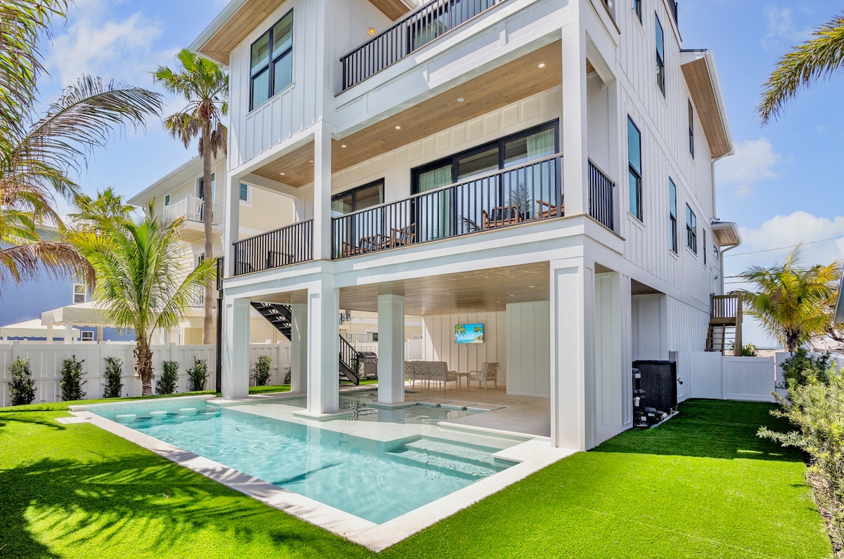Tillbringa dina dagar med att leka i poolen och njuta av solen på denna kustresa! Den enorma avskärmade lanai inkluderar en orörd uppvärmd saltvattenpool med ett spillover spa och sol avsats, och stort täckt utomhus vardagsrum och matplats. Den uppdaterade 3 sovrum, 2 badrum interiör är ljus och rymlig, med mycket naturligt ljus och nästan varje rum flödar ut till poolen. Beläget i ett lugnt grannskap med snabb tillgång till AMI-stränder, IMG, vandringsleder, parker, shopping och restauranger!