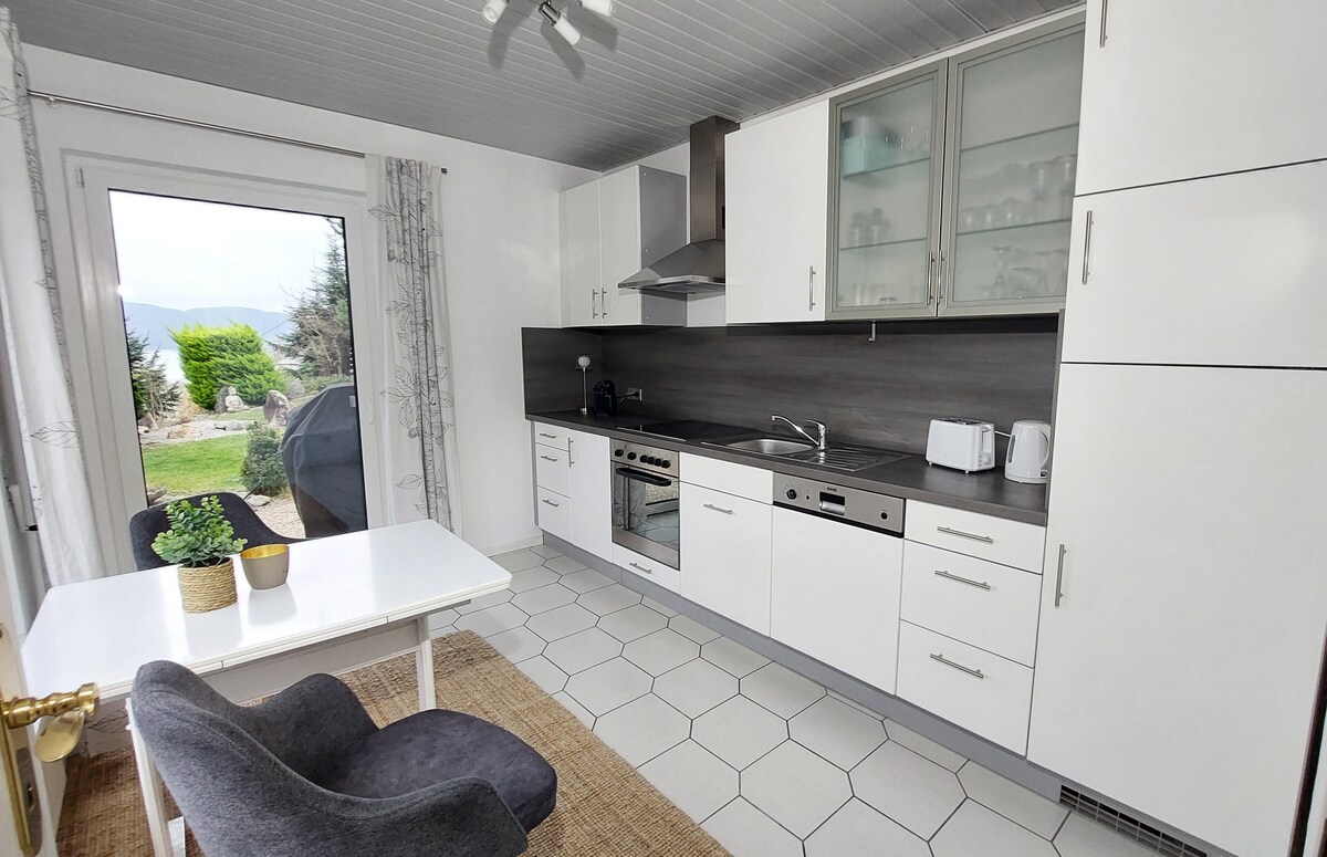 Den fantastiska naturen i Mellersta Rhen-dalen börjar direkt utanför dörren. På den lugna Rhenleden är lägenheten en kärleksfullt utformad reträtt för två till fyra personer. Från den glasade terrassdörren öppnar sig utsikten över stadens tak och den breda dalen. Uteplatsen med utsikt över Rhen inbjuder dig att njuta av ljus, luft och landskap. Loreley friluftsscen ligger också nära. Lägenheten har separat ingång och har nyligen renoverats i stor utsträckning.