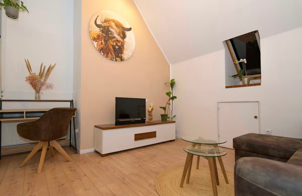 Kom, vandra, känn dig bekväm och koppla av, ladda batterierna, hitta lugn och känn dig trygg i vår lägenhet på bottenvåningen, som vi har renoverat medvetet. Vi köpte gården för 12 år sedan och har byggt, trädgårdsskött och bott här mycket lyckligt ända sedan dess, trots allt arbete som fortfarande behöver göras. Under tiden bor vår dotter Nele's familj också på gården. Nele är också alltid lyhörd. Du hittar oss i utkanten av Wald-Erlenbach.