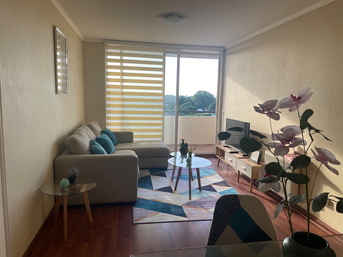 Njut av enkelheten i detta lugna och centrala boende, fullt utrustat, rymligt, perfekt för vila eller arbete, mindre än ett kvarter från stormarknader (unimarc, santa Isabel och tottus), Los Andes klinik, skola, strip center. Den har en pool, grillplats, terrass, sportområden, etc. Mycket bekvämt och mysigt. Lägenhet med vakt dygnet runt. Den har en terrass på balkongen för att njuta av solnedgången. Med skydd. Inkluderar lakan och handdukar för varje gäst.