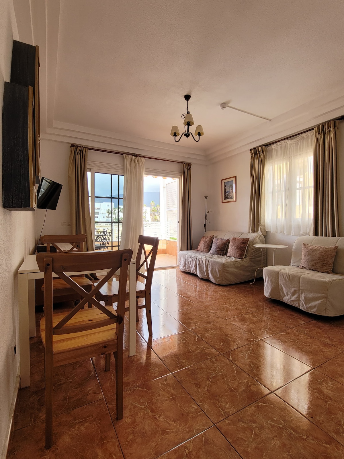 Located 150 metres from the entrance to la pinta y fañabe beaches, this complex offers 3 swimming pools, a bar and a water dispenser. Modern furnished apartment with 2 comfortable bed (90cm each) and spacious wardrobe. Salon kitchen with built-in appliances - stove, oven, microwave. All kitchenware and utensils are included. In the cabin sofa - bed dining area and TV with international TV, Internet. The bathroom is equipped with furniture and washing machine. Spacious relaxation terrace.