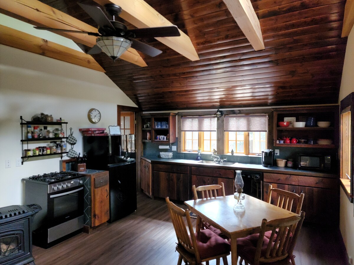 Vi erbjuder en stor stuga, ett stenkast från floden på vår älgranch. Vår stuga för alla årstider rymmer par, eller grupper upp till 6, och fungerar som en hemmabas eller startplats för områdenas otaliga aktiviteter. Vi erbjuder också flugfiskeåtkomst, om tillgängligt med en spöavgift, detta är separat från stugan, och måste bokas i förväg. Vi debiterar en avgift på 100 USD per husdjur.