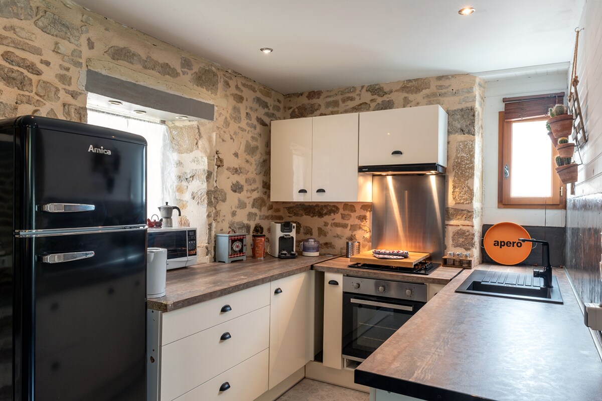 På höjderna i Beaulieu-sur-Dordogne, som nyligen klassificerats som ett av "Frankrikes vackraste byar", i hjärtat av den lilla, lugna och fridfulla byn Sioniac, låt dina dagar rytmas av ljudet av klockor och tuppar. Detta charmiga hus (klassificerat som möblerat turistboende 3*) med typiska korsvirkade väggar har renoverats av oss. Du kommer bara att vara 5 minuter med bil från centrum av Beaulieu, dess butiker och dess tillgång till Dordogne (2,5 km).
