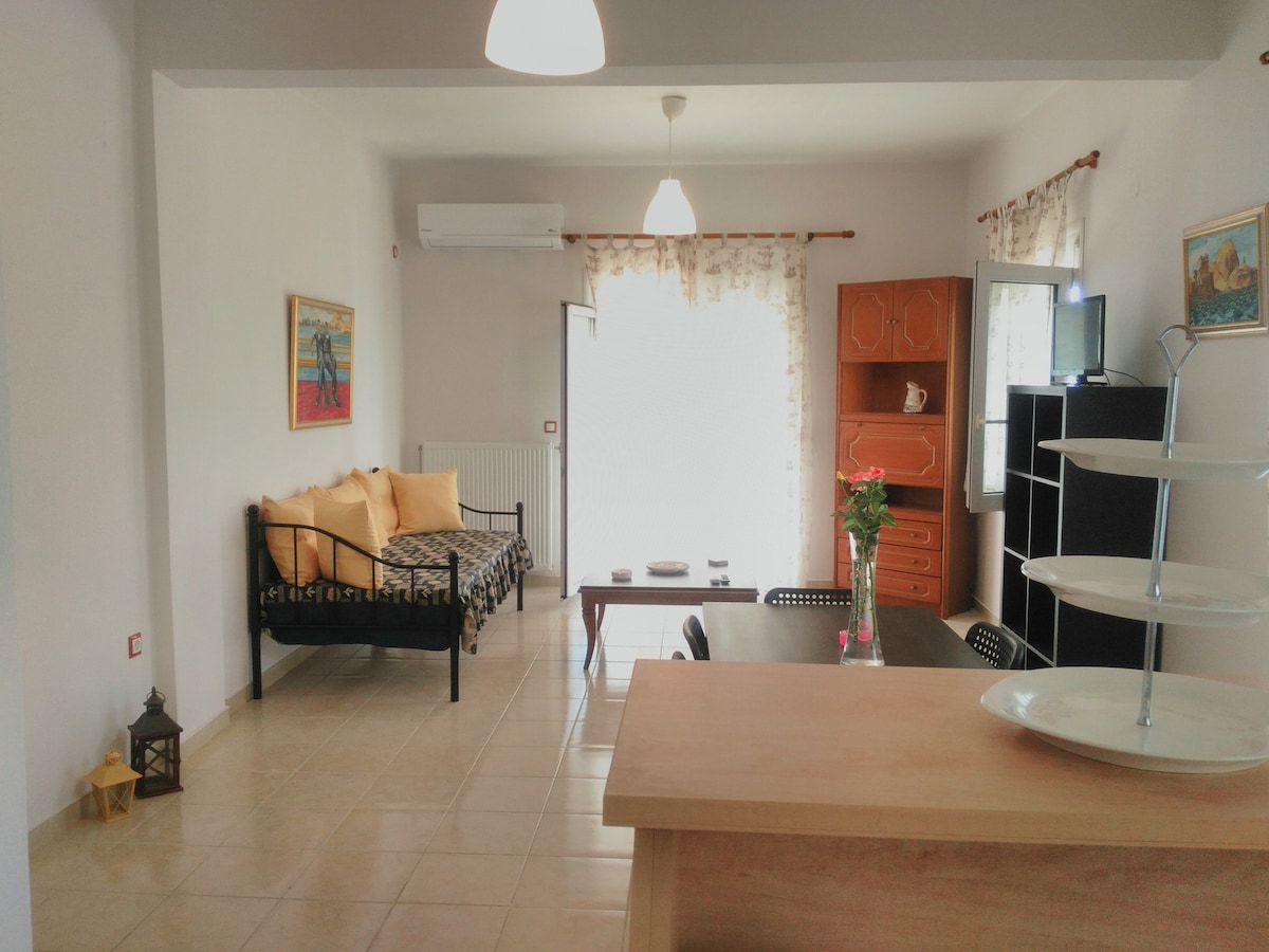 (För grekiska, läs vidare). Hel, privat, sommarlägenhet på andra våningen, fullt möblerad och utrustad. Perfekt för både långa och korta vistelser, nära en mängd stränder och naturliga sevärdheter, termiska källor och satellitöar. Hela lägenheten på andra våningen, med utsikt över fullt utrustade och möblerade. Perfekt för långa och korta vistelser, nära en uppsjö av stränder och naturattraktioner, i termalbad och intilliggande öar.