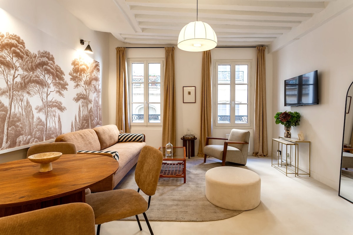 Bo i hjärtat av Paris, nära Louvren, i ett säkert och lugnt område. Njut av en ren, bekväm och välutrustad lägenhet med två duschrum, varav ett med toalett. Dra nytta av ultrahöghastighetsinternet, plus gratis tillgång till Netflix och Disney+. Perfekt för familjer, grupper eller affärsresenärer som värdesätter komfort, med enkel tillgång till stora turistattraktioner, närliggande tunnelbanestationer och alla väsentliga bekvämligheter. Läs den fullständiga beskrivningen innan du bokar