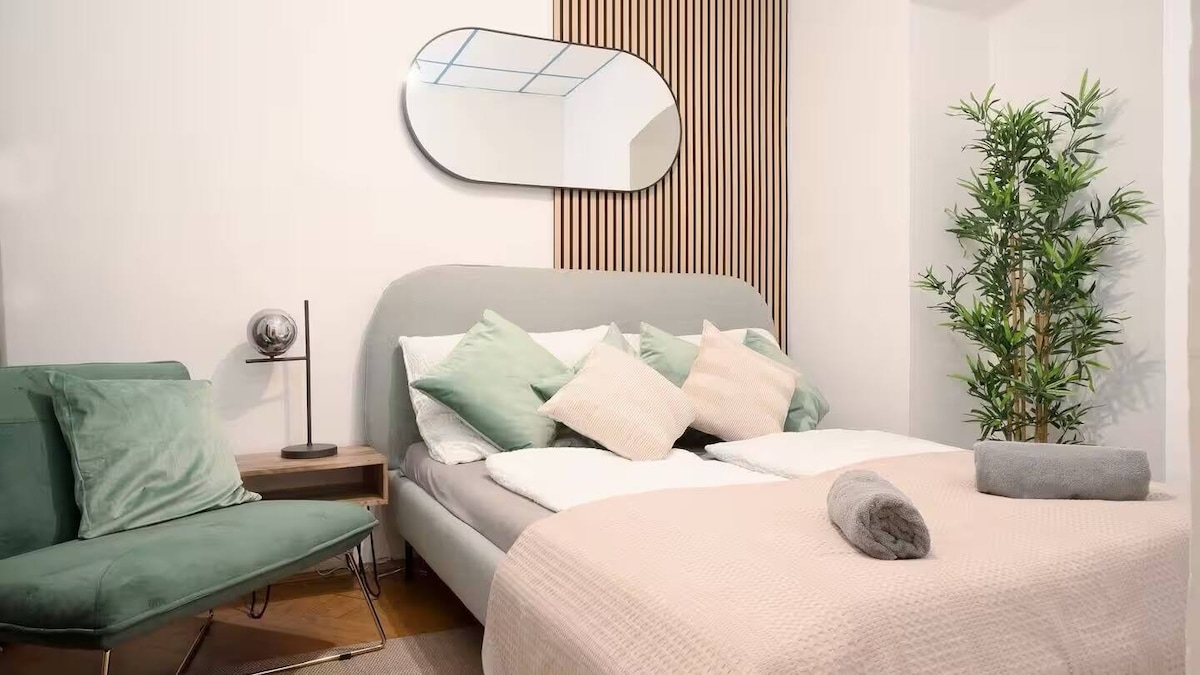 Välkommen till vår moderna och elegant inredda lägenhet, perfekt för upp till 6 gäster! I allrummet hittar du en bekväm dubbelsäng och en bäddsoffa. Dessutom finns ett separat sovrum för mer avskildhet. Fullt utrustat kök erbjuder allt du behöver för matlagning och badrummet är utrustat med dusch. Njut av avkopplande kvällar i vardagsrummet med stor TV och snabbt wifi. Perfekt för en bekväm vistelse!