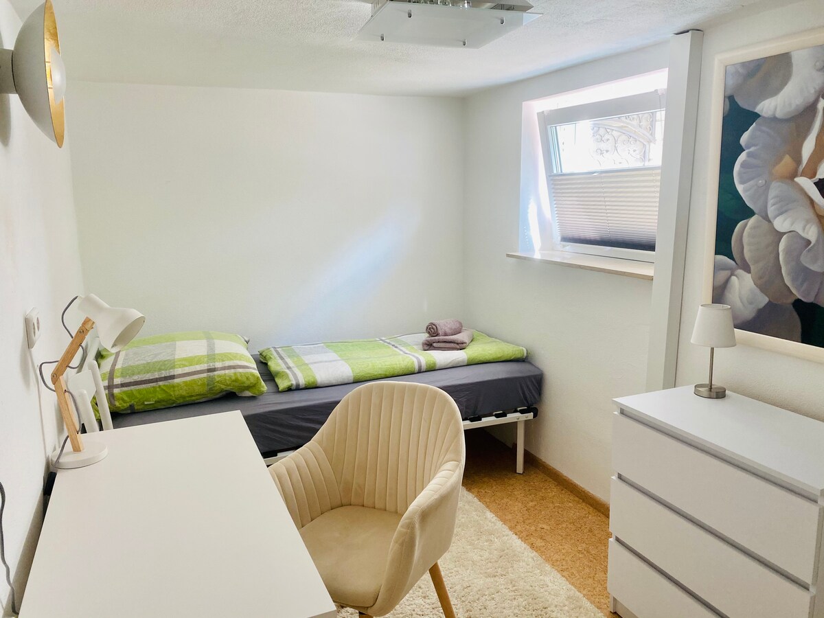 My cozy guest room with separate entrance, private toilet and shower is waiting for you. Within walking distance of the trade fair and the grounds of the Landesgartenschau from 2023! Free parking spaces are available directly in front of the house. The in-house sauna can be used on request, and it is also possible to set up a travel cot for children. The guest room also includes a fully equipped kitchen and a fridge in your hallway (so it won't disturb your sleep).