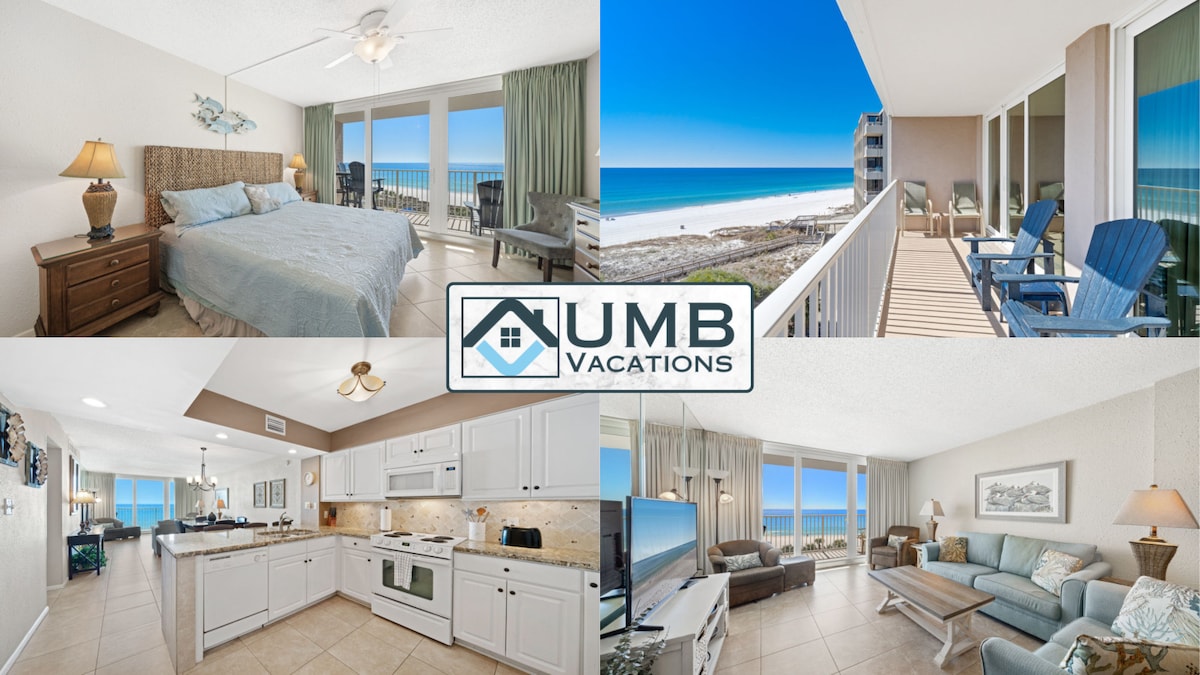 Come enjoy the beautiful views of the Gulf of Mexico in this 2-bedroom, 2-bath unit. This 5th floor beachfront condo is located in the newest building at Summerhouse Condominiums and can accommodate up to 6-7 adults comfortably. The beautiful views of the pool and emerald waters can be seen from the privacy of your own balcony, living area and master bedroom. Condo comes with two chairs and an umbrella (season pending) are available.