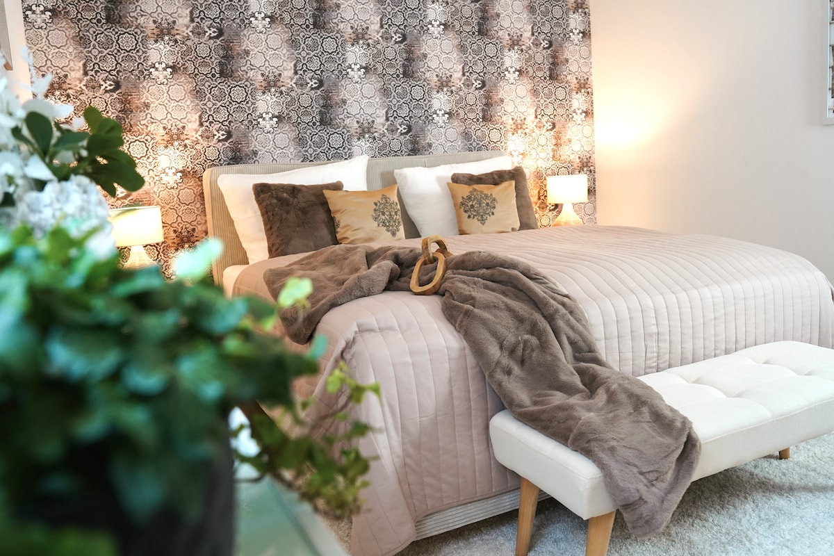 Välkommen till din eleganta City Suite mitt i Hildesheim! På 95 kvm hittar du två lugna sovrum med bekväma dubbelsängar, ett fullt utrustat kök med en matplats och en Nespresso-maskin för att börja dagen rätt. Modern design och en smart layout gör det perfekt för familjer, vänner eller affärsresenärer. Lugnt men centralt – med höghastighets-WiFi och en privat parkeringsplats.