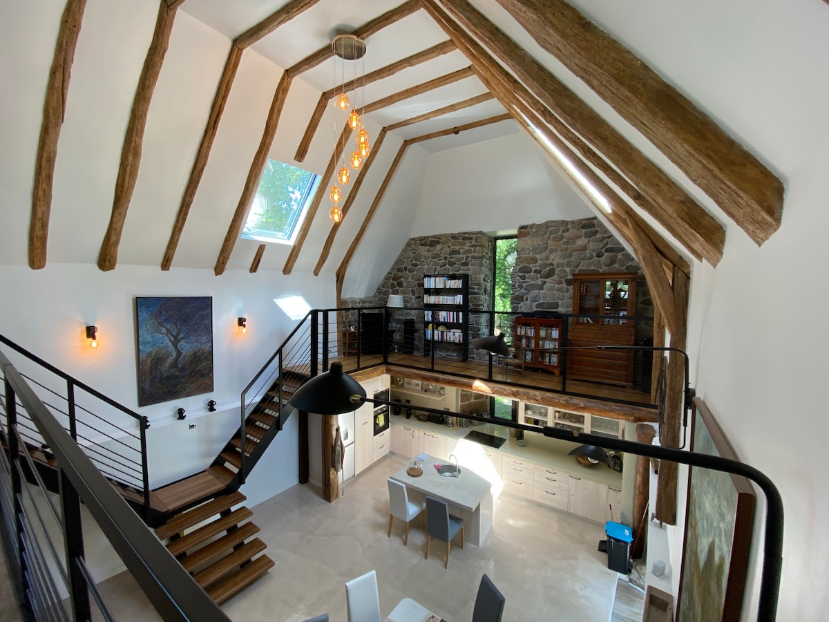 Emilies hem är en före detta ladugård och stall som omvandlas till charmigt boende med 5 oberoende sovrum med badrum och toaletter. Matrum med vardagsrum och öppen spis. Veranda för frukost eller måltider som njuter av landskapet. Fullt utrustat kök: diskmaskin, kylskåp, mikrovågsugn, Lacanche piano, vinkällare. Hälsoavdelning med bastu, hamam, jacuzzi, gym med cykel, livlig plattform, massagestol Uppvärmd säker pool juni till september