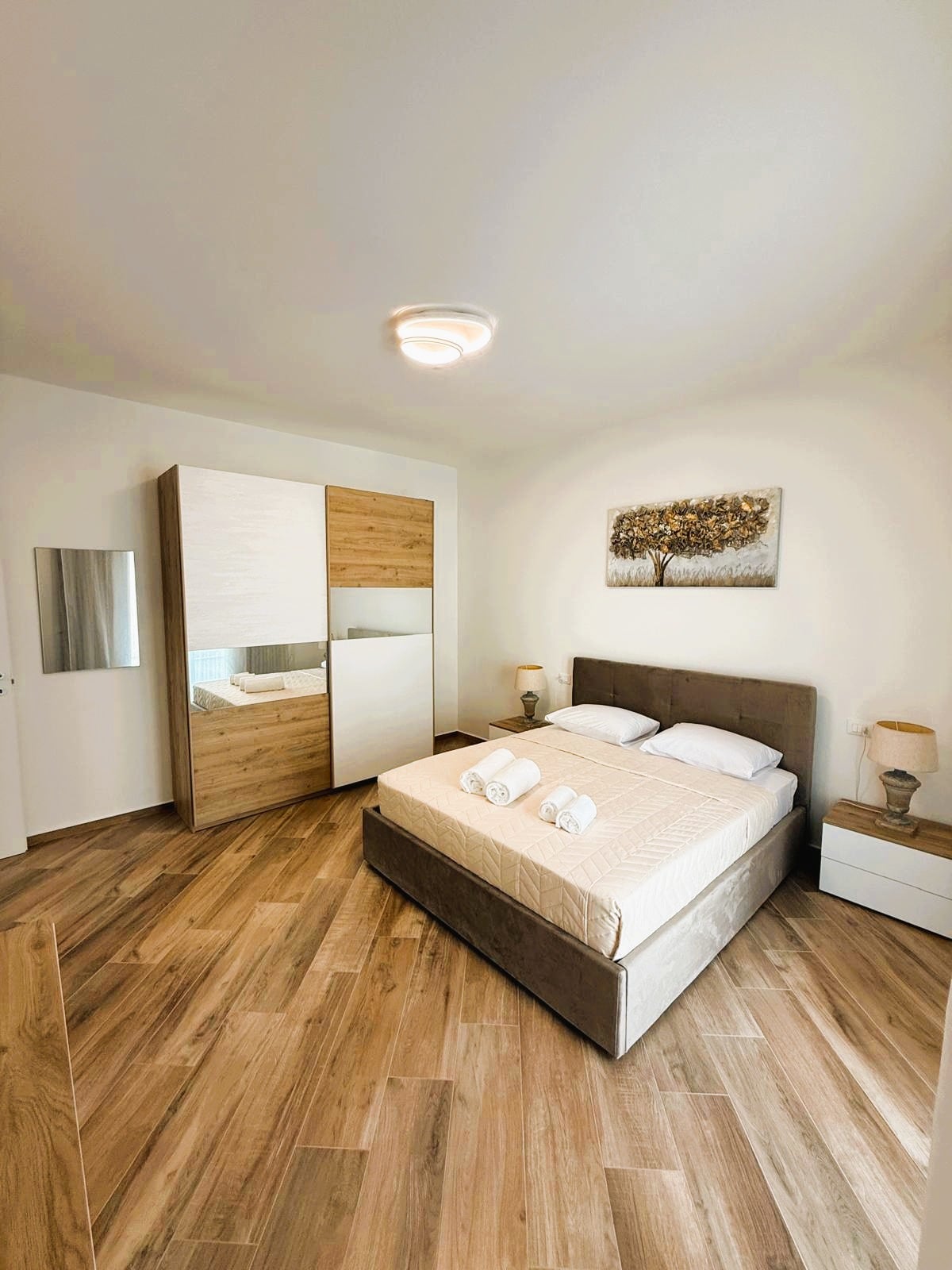 Underbar lägenhet för 6 personer på bottenvåningen, bara 150 m från vacker strand. Lägenheten består av pentry, vardagsrum med bäddsoffa, sovrum med dubbelsäng, sovrum med 2 sängar, badrum, terrass, privat trädgård (3 TV-apparater). Gott om allmän parkering. Köket är mycket välutrustat. Luftkonditionering och värmepump . I badrummet, som har dusch, finns även hårtork, strykjärn och tvättmaskin.