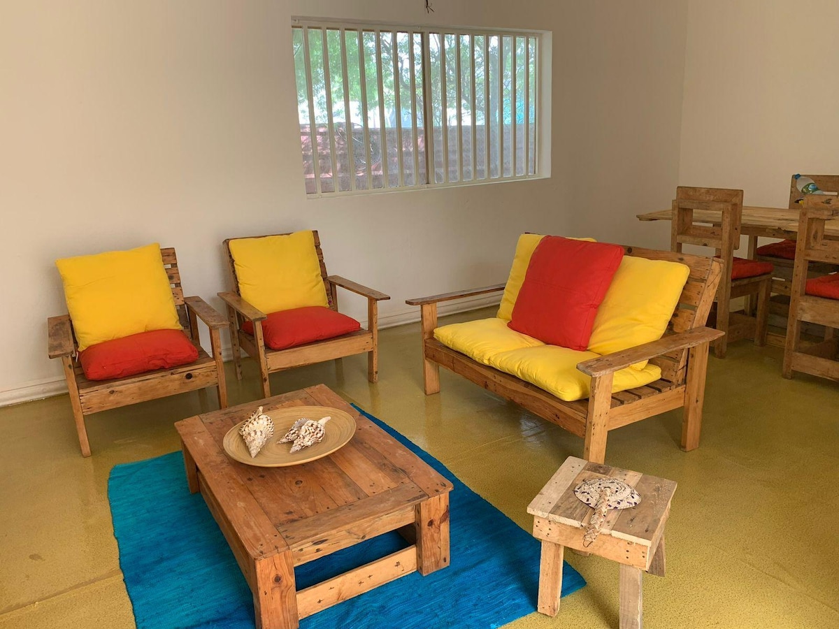 Bekvämt hus T2 rum sviter, beläget i hjärtat av Luanda (kryssning). 7 minuter från luanda ön, 4 min från Mutamba och 1 minut från kinaxixi och 5 minuter från Largo do Ambiente. Området omges av en bra restaurang och stormarknader. Super säkert och tyst område. Vi har gratis daglig städning. Rummet är utrustat med 75" TV med mer än 6000 kanaler. Det stora rummet har TV med internationella kanaler och köket är utrustat med ugn, elspis och mikrovågsugn
