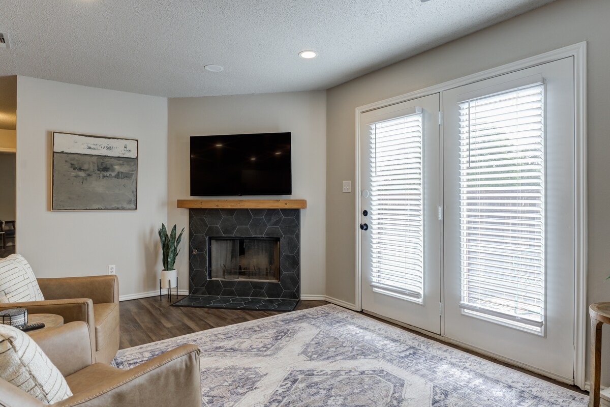 Detta rymliga och fantastiska boende är den perfekta basen för din Lubbock-semester. En mile från Texas Tech och nära restauranger och shopping, detta moderna och fullt renoverade 3 sovrum två badrum hem har 1800 kvadratmeter bostadsyta, en vedeldad öppen spis, ett fullt utrustat kök, graniträknare, en täckt uteplats, privat inhägnad trädgård, ansluten 2-bilsgarage och charm i överflöd. Bekväma sängar, sängkläder av hög kvalitet, smart-TV och höghastighetsinternet ser till att din vistelse är vilsam och trevlig.