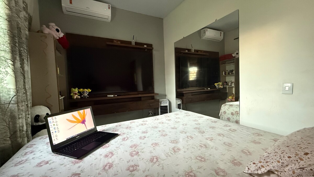 Mysigt, komplett och privat utrymme, perfekt för avkoppling i komfort och lugn. Den har luftkonditionering, Wi-Fi, TV, säng, garderob och privat badrum. Köket är utrustat med spis, kylskåp och mikrovågsugn. Tyst, organiserad miljö, med parkering under tak vid ingången. Extra madrass för tredje vuxen eller barn gäst tillgänglig mot en avgift. Bekvämt läge, nära snabbköp med bageri, apotek, gym och allmänna butiker.