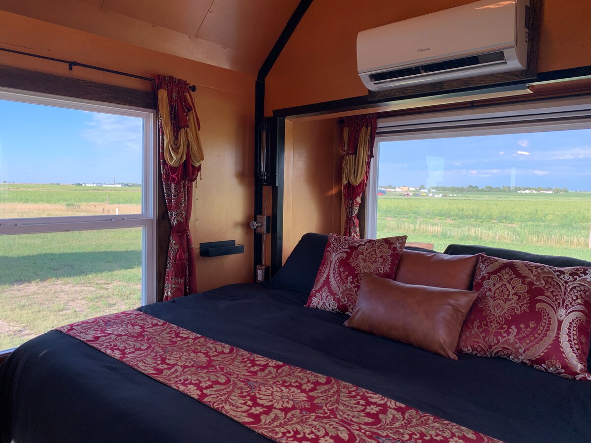 Upplev detta lyxiga lilla Steampunk-hus med en rustik utsida; fängslande steampunk-kopparinredning inuti. Nyckellös ingång och nära Hays, KS. Inkluderar en dubbelsäng inuti en stor bildfönsternisch som ramar in Kansas jordbruksmark, och full säng på loftet, smart 3d laserprojektor, motoriserad skärm, wifi, AC och kran dimmerljus. Köket inkluderar minikylskåp, mikrovågsugn, induktionskokplatta; grundläggande rätter och matlagningsutrustning tillhandahålls. Fullt badrum är utrustat med handdukar, schampo, balsam och duschtvål