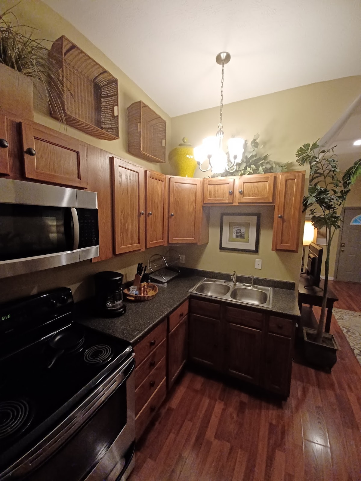 Din urbana oas i hjärtat av centrum! Denna eleganta tillflyktsort är ditt hem hemifrån komplett med två 65 tums TV-apparater! Njut av en King Size-säng med alternativ för bäddsoffa och en hopfällbar gästsäng för 2 extra gäster! Säkerhet möter bekvämlighet eftersom du är bara några steg från Gainbridge Fieldhouse, Lucas Oil Stadium och Convention Center. Utforska Mass Ave, museer och en mängd restauranger och nattliv, alla inom gångavstånd. Denna pärla kommer inte att vara länge, boka nu för en oförglömlig vistelse!