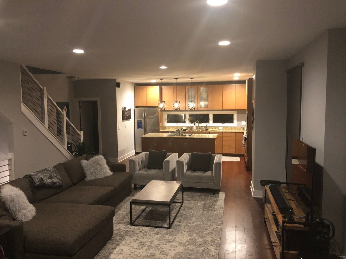 -Convention Center, Gainbridge Fieldhouse, Victory Field och IUPUI alla inom 1 mile. - Modern inrett 3BR hem du och din familj kommer att älska. - Nära till allt. Detta boende är centralt beläget i centrala Indy. -Lucas Oil ligger 5 minuters promenad bort. - Sovrum med dubbelsäng på huvudvåningen med fullt badrum. - Sovrum med dubbelsäng på övervåningen med badrum. - Sovrum med dubbelsäng på övervåningen - Utdragbar säng på övervåningen i vindsvåningen - Stort rymligt kök, matbord för 8. - Tvättmaskin och torktumlare - Keurig och kaffebryggare