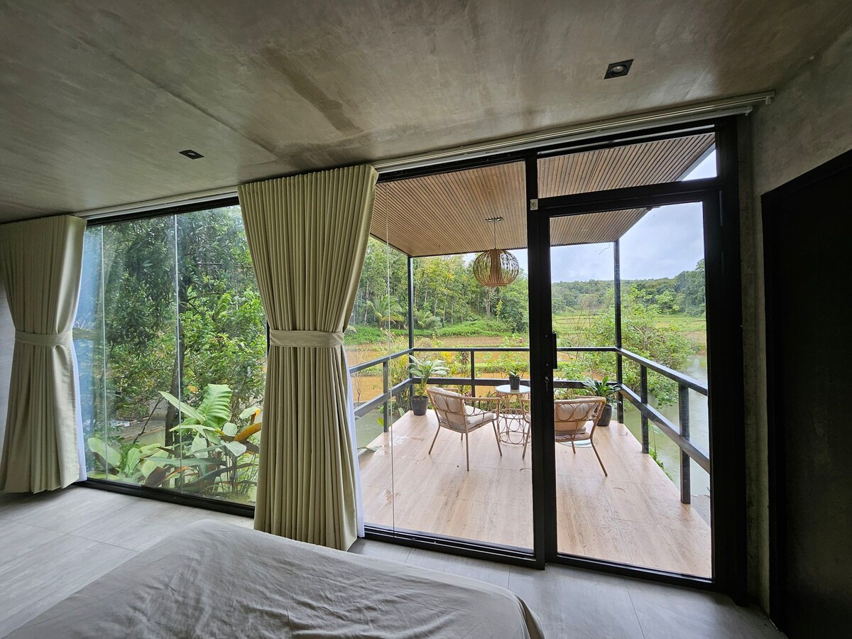Riverside glasstuga i med/privat jacuzzi (loboc)