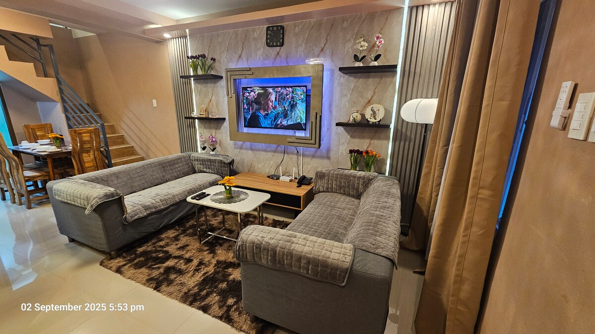 ●4 vuxna max, 500 php varje extra person ●cctv endast vid ytterdörren ●2-våningshus ● hela huset med 1 parkeringsplats i ● framför boendet ●2 sovrum med luftkonditionering + 1 rum endast fläkt ●1 toalett med värmare och dusch ●Handdukar, tandborste, tandkräm för gästen ●Schampo, duschtvål, balsam ●200 mbps internet tillgängligt cignal tv med 43-tums TV ●Eget kylskåp ●Vattendispenser ●Kompletta köksbekvämligheter ●Mikrovågsugn ● köksartiklar ●Rismatlagning/enbart lätt matlagning
