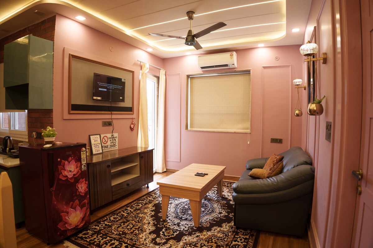This luxury 2BHK penthouse sits on a hotel rooftop, giving you complete independence — no society rules, no awkward neighbors, no interruptions. The lift opens straight into your private rooftop, making it feel like your own sky villa. Perfect for: 🎉 Parties & celebrations 🥂 Pre-wedding / birthdays 🌃 Chill nights with skyline views You get a private rooftop living room with kitchen, 2 rooms, 2 washrooms, fridge, geyser, Wi-Fi, AC & all amenities. Note- All damages will be chargeable.