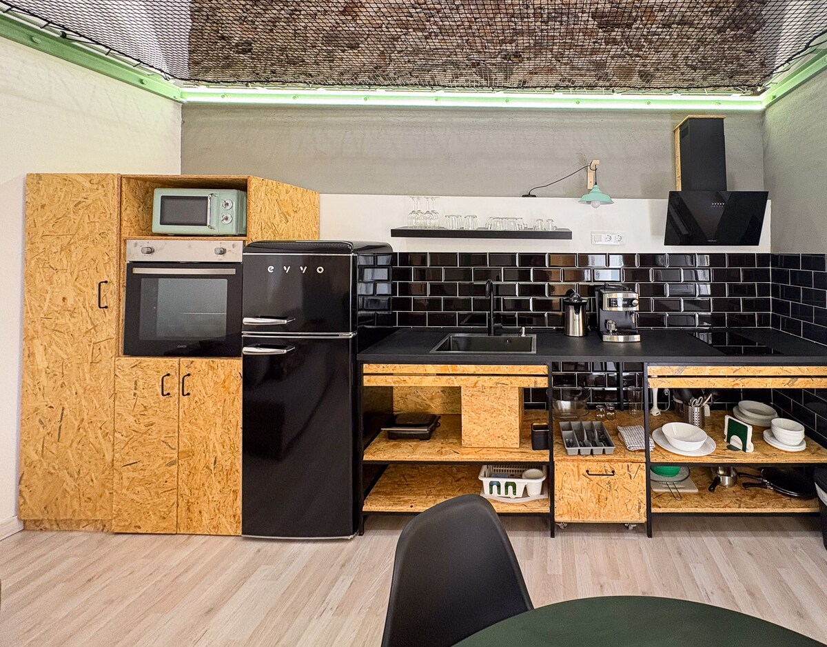 Det som en gång var en gammal pajar, har helt rehabiliterats och omvandlats till en charmig loft-stil studio i ett lantligt komplex med stora trädgårdar. Med ett stort trätak och inrett med jordbruksredskap. Kök med kylskåp, mikrovågsugn, brödrost, fullt servis, kokplatta, kaffebryggare. Köksbord och stolar, soffa. Den har en säng på 1,50 och enkelsäng på 1,35 meter. Fullt utrustat badrum med duschbricka. Bärbar grill finns. Trädgårdsområde med bord och stolar.