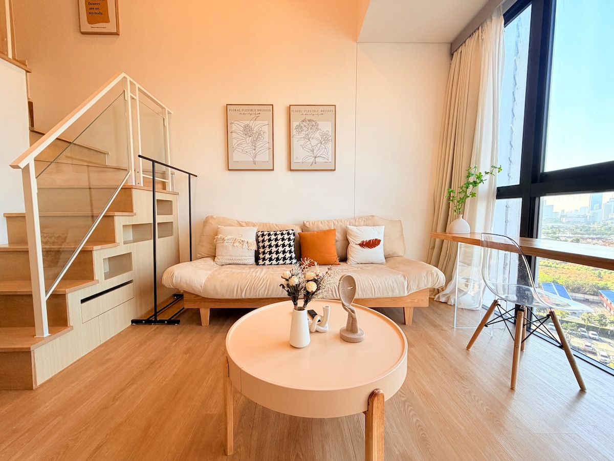 2BR Duplex | MRT Rama 9 CBD | Sky Pool | 4 gäster