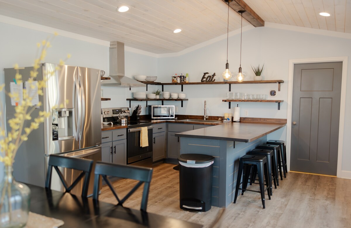 Piccolo on Pine ligger bara några kvarter från det historiska Dahlonega Square och är en typisk sydlig charm. Vår älskade designstuga byggdes 1935 och har en veranda på framsidan, fullt utrustat kök och uppdaterad inredning, elegant inredning, bra wifi. Gångavstånd till några av Dahlonegas bästa restauranger, museer och butiker. Behöver du mer utrymme? Vårt Town & Porch house ligger tvärs över gatan! Kom och "sitt en stund" och upplev elegant sydlig gästfrihet på Piccolo on Pine!