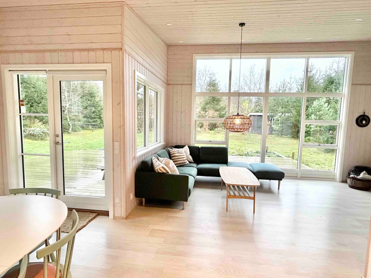 Nyt lyst træhus i naturen - tæt på sandstrand.