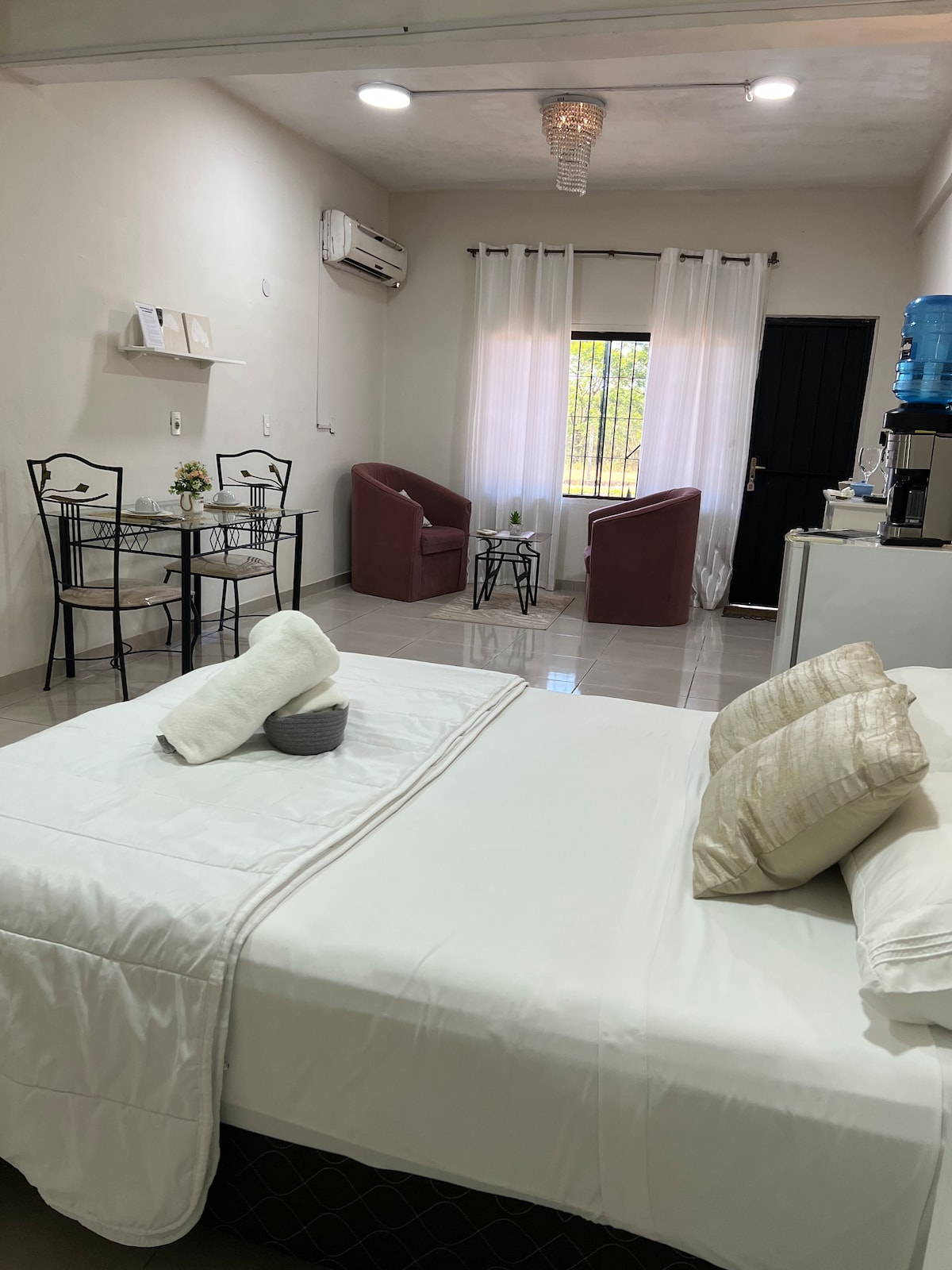 Moderno y Acogedor Departamento monoambiente Cerca de Asunción, ubicado en un condominio cerrado. Disfrutá de una estadía cómoda, segura y con estilo en Luque. Ideal para parejas, viajeros de negocios que buscan una experiencia tranquila pero bien conectada. Este depto te brinda fácil acceso a supermercados, farmacias, restaurantes y rutas principales que conectan rápidamente con el centro de Asunción y el aeropuerto.