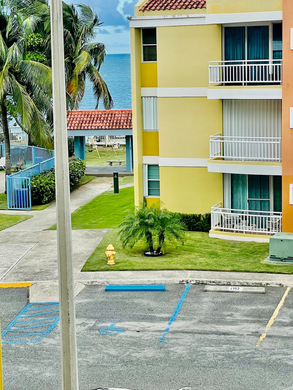 Modern lägenhet på 2:a våningen i ett äldre lägenhetskomplex erbjuder ett fullt utrustat kök, LR/DR, 3BR/2BA w/2 queen beds & 1 king master suite. En privat 1250SF terrass sveper runt lägenheten vilket möjliggör en spektakulär 270* utsikt över havet, det nationella ekologiska reservatet och El Yunque regnskog. Det säkrade komplexet erbjuder parkering, ett litet gym och direkt tillgång till stranden. Denna strand kan ha starka strömmar men en lugn strand ligger 5 minuters promenad bort. Stanna för en piña colada på vägen eller en bit mat!
