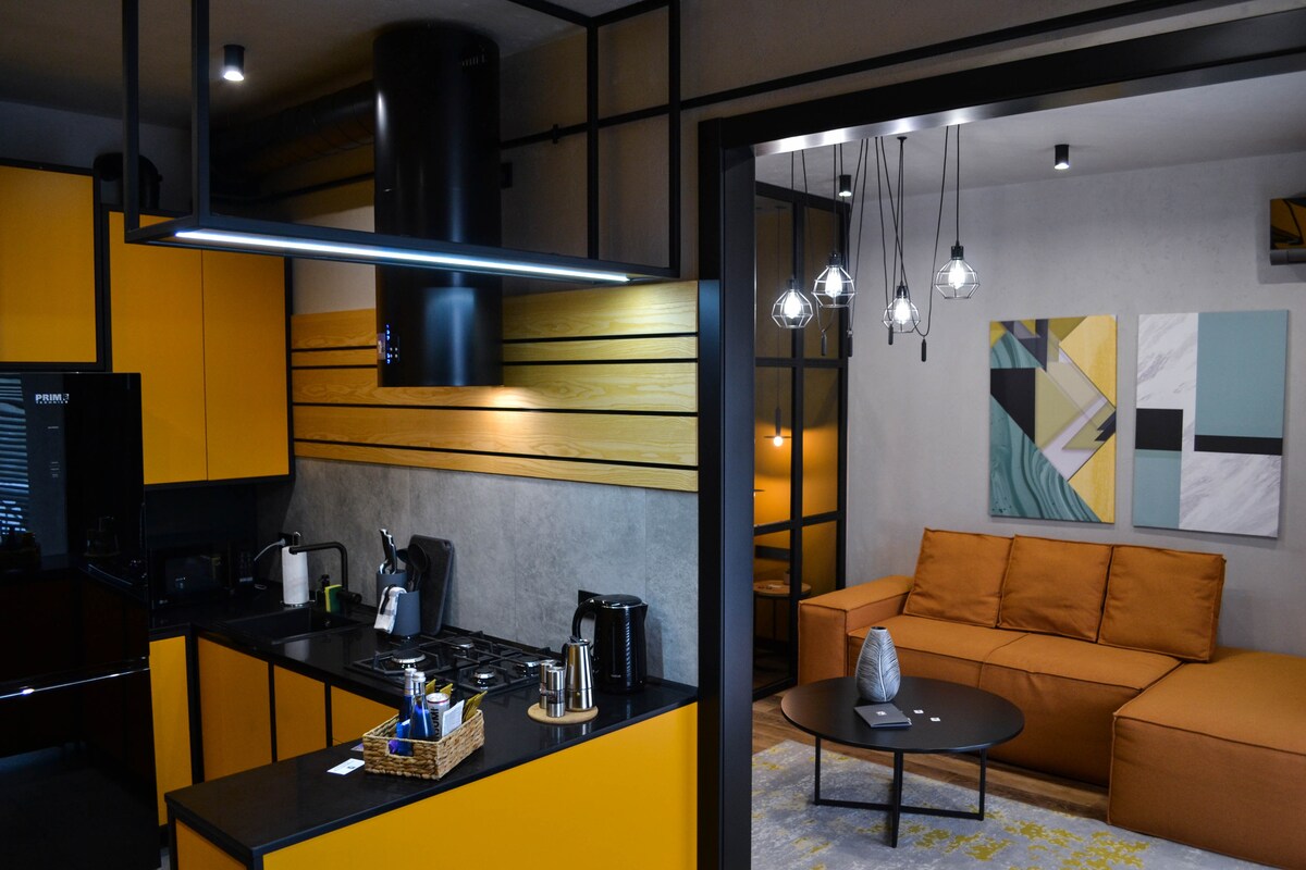 ACCENT APART HOTEL ligger i hjärtat av pittoreska Lviv, med egen parkering. Bekvämt läge, kommer inte att lämna de mest kräsna turisterna. Du kommer enkelt att kunna komma in i alla hörn av staden, vilket är en viktig fördel, både för affärsgäster i staden och för turister. Vårt läge ligger 550 m (7 minuters promenad) från Rynok Square, 7 km från Lviv International Airport och 3 km från stadens järnvägsstation.