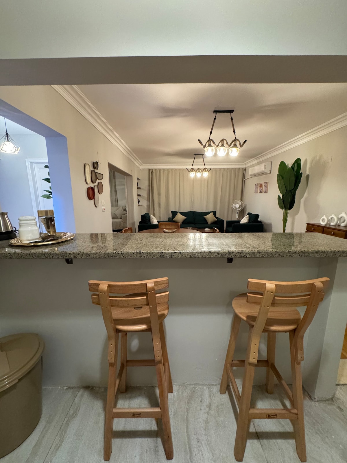 Välkommen till Gardan in the Sky - Maadi, en takvåning med frodig grönska och 270° utsikt över Kairo. Steg från Street 9 kaféer, restauranger och dagliga väsentligheter. Njut av centralt boende med privat takterrass i ett av Kairos mest gångvänliga områden. Lägenheten har ett ljust vardagsrum och matplats, fullt utrustat kök, Nespresso-maskin, 1,5 badrum, luftkonditionering, Wi-Fi och en tvättmaskin-idealisk för både korta och längre vistelser.