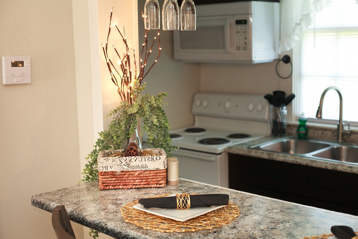 Välkommen till The Yellow House Macon, en pärla i centrum som uppskattas av hundratals gäster med 5-stjärniga omdömen! Detta vackert renoverade historiska hem är familjevänligt och ligger i hjärtat av Macon, några steg från Tattnall Square Park, Mercer University och Atrium Health Navicent. Bara några minuter från centrum och Piedmont Macon Hospital, blandar det modern komfort med södra charm. Perfekt för längre vistelser. Skicka ett meddelande till oss för säsongsbetonade rabatter, sjukvårdsrabatter och specialrabatter!