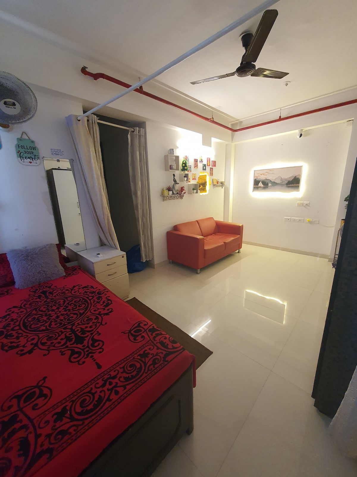 Touchdown Haven är genomtänkt utformat för ENSAMRESARE med allt du behöver för att vila, ladda och varva ner efter din flygning. Denna bekväma studiolägenhet ligger bara några minuter från Chhatrapati Shivaji Maharaj International Airport (5–10 minuter) och Domestic Airport (15–20 minuter). Beläget i Sahar Village, det är bara en kort 2 minuters promenad genom charmiga körfält för att nå BnB. Oavsett om du anländer sent eller lämnar tidigt är Touchdown Haven din perfekta landningsplats i Mumbai!