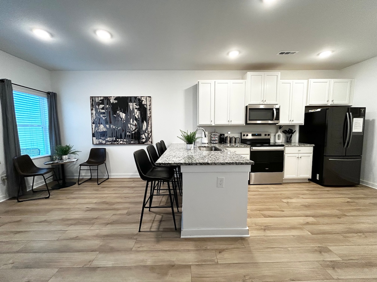 Detta rymliga radhus är perfekt för affärsresenären som vill ta med sin familj, eller någon som vill ha utrymmet och bekvämligheterna i hemmet. Föreställ dig att brygga en kanna kaffe och steka några ägg som jag har tillhandahållit för din vistelse. Senare återvänder du från en produktiv dag. Kanske lämnade du lite kött och potatis i Crock-grytan på låg värme hela dagen? Eller är det dags att experimentera med fläskfilé och zucchini på grillen? Resans börda tar en paus inom dessa väggar! Perfektion!